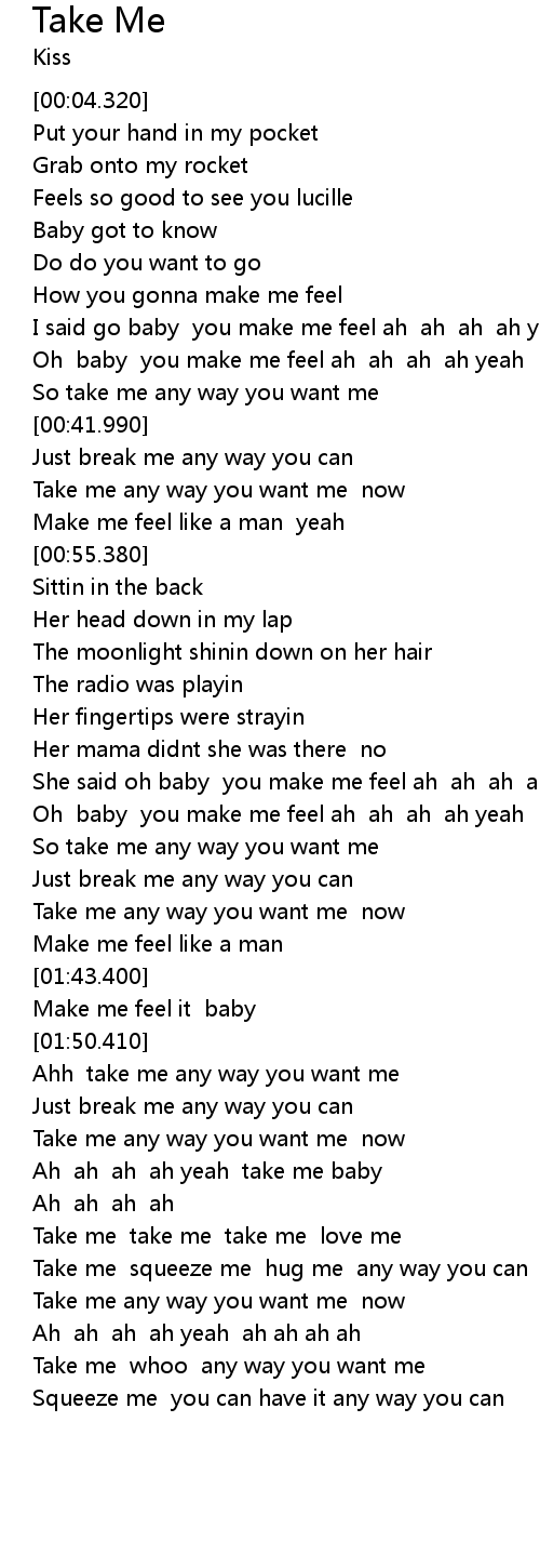 One of my fave songs with lyrics. Time and time and time again. Chorus G Am Baby i love you to want me C the way that i want you G the way that it should bemm mmm G Am Baby you love me to want you C the way that i want to D G if you only let it be.